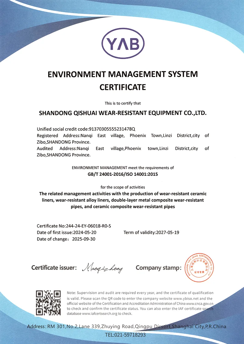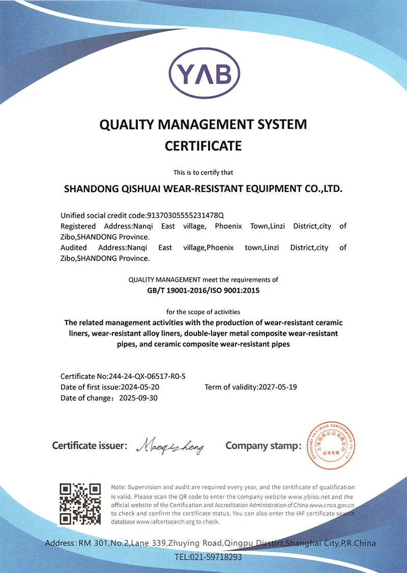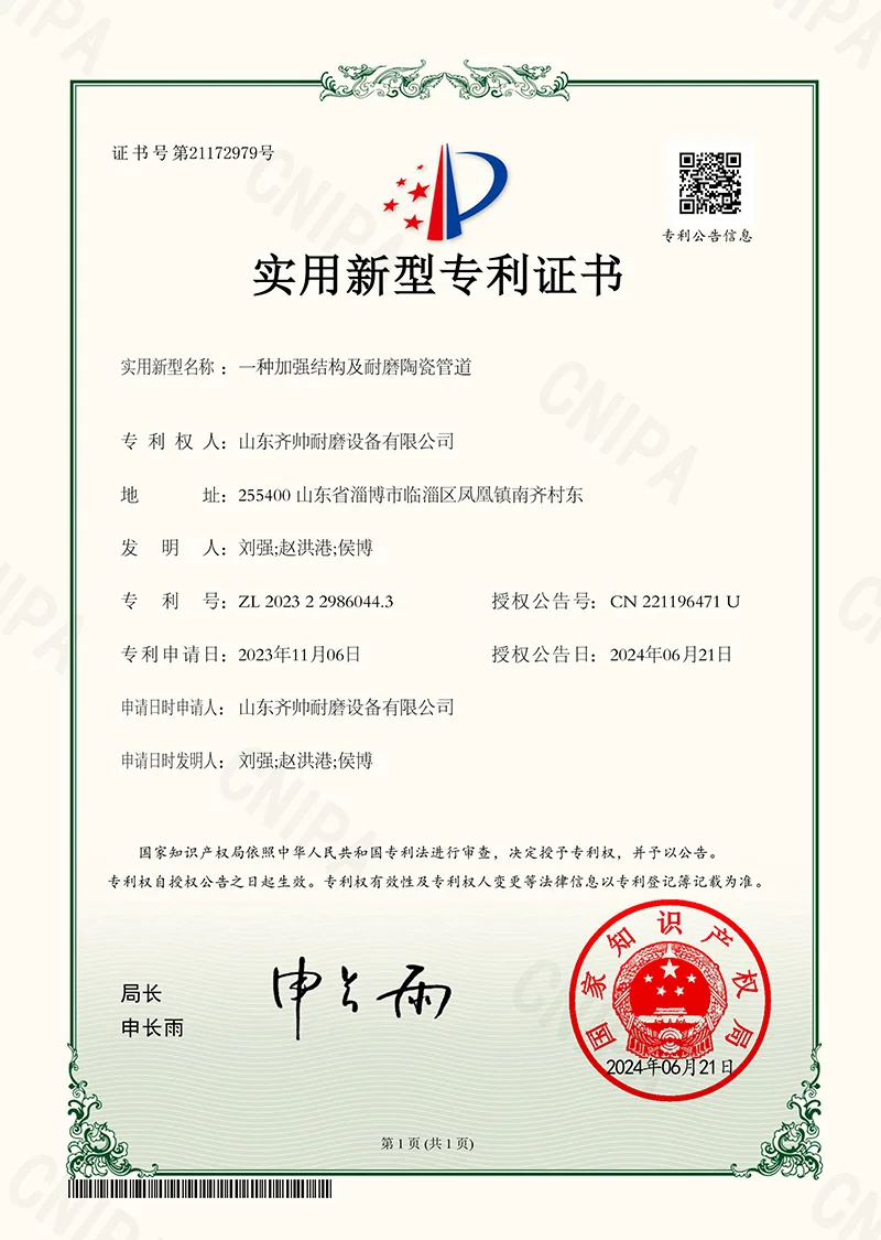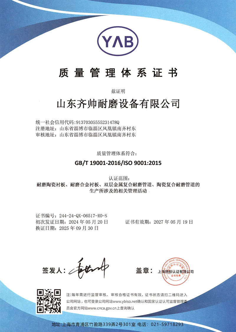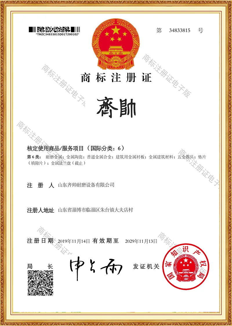 Het bedrijf is ISO9001-gecertificeerd en heeft talloze patenten op gebruiksmodellen gekregen, waarmee het erkenning krijgt voor zijn technologische kracht. Wij bezitten onze eigen fabriek en zijn al meer dan tien jaar nauw betrokken bij de slijtvaste productindustrie.