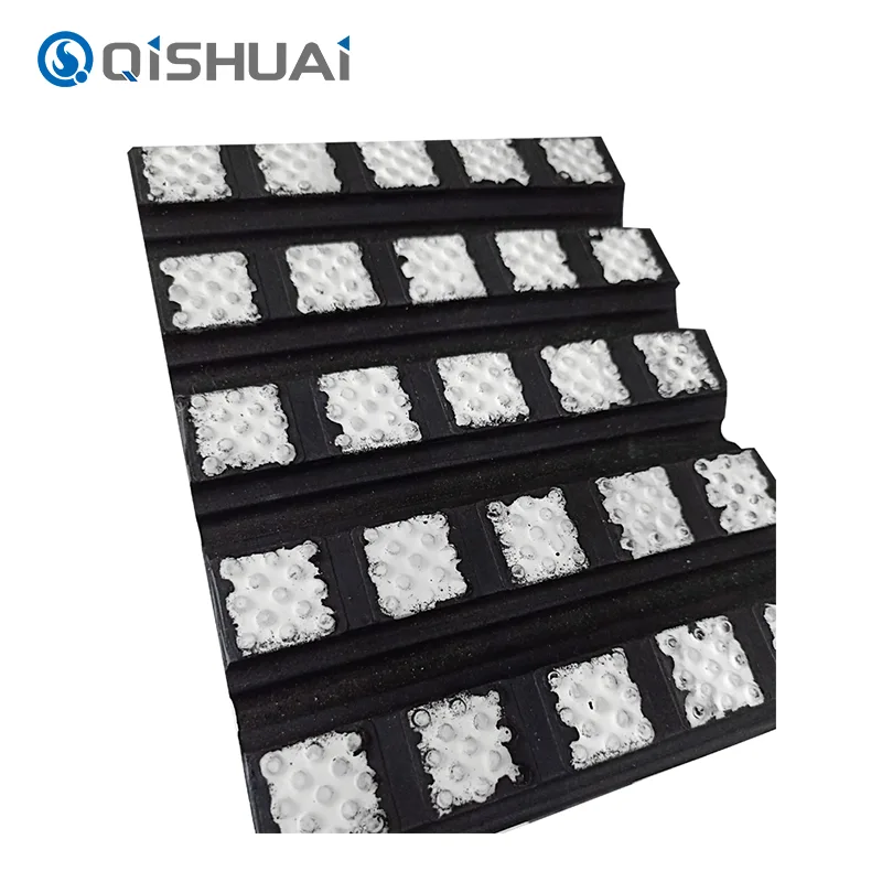 Slip is een lastig probleem tijdens materiaaltransport. Het vermindert niet alleen de transmissie-efficiëntie, maar kan ook leiden tot materiaalophoping, uitval van apparatuur en een reeks andere problemen. Ons product van Shandong Qishuai Wear-Resistant Equipment Co., Ltd. lost dit probleem perfect op door zijn unieke oppervlakteontwerp. De keramische deeltjes bevinden zich willekeurig op het oppervlak en er zijn talloze kleine deeltjes die de wrijving met materialen vergroten.