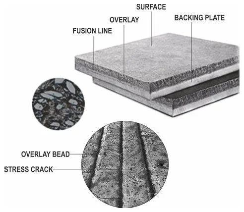 Chrome Carbide Overlay Plates introduceert slijtvaste apparatuur voor al onze klanten op een efficiënte manier en met een lange levensduur! Bel me onmiddellijk als u hulp nodig heeft over de specificatie van chroomcarbide overlayplaten of als u een monster wilt aanvragen!
