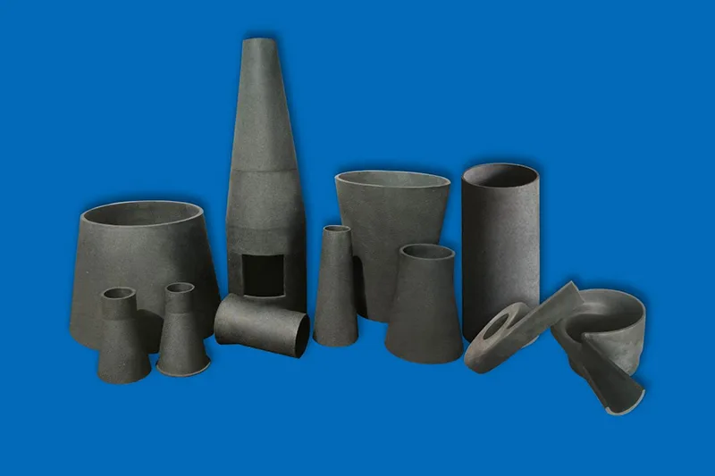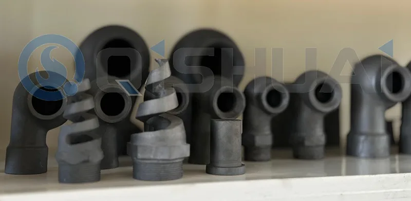 Siliciumcarbide mondstukken worden vaak aangetroffen in stofverwijderings-, spuitcoating-, ontzwavelings- en verbrandingssystemen als slijtvaste onderdelen. Naast de voorraadspuitmonden met eenvoudig profiel kan Qishuai ook aan de eisen van de klant voldoen door indien nodig nieuwe spuitmonden te ontwerpen met aanpassingen aan de spuithoek, stroomsnelheid en corrosieweerstand. SiC verlengt de uptime van apparatuur en verlaagt de levensduurkosten.